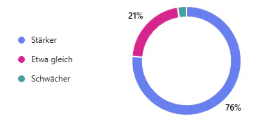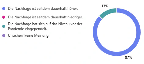 Insgesamt zeigte sich der pyrotechnische Fachhandel überaus zufrieden mit der zurückliegenden Saison (durchschnittlich 3.95 auf einer 5-stufigen Skala). Das Vertrauen in eine fortlaufend höhere Nachfrage als vor der Covid-19 Pandemie ist groß (s. Abbildung 2) und der Ausblick optimistisch: 63% der meldenden Händlerinnen und Händler rechnen mit einer weiteren Steigerung der Nachfrage, 16% mit einer zukünftigen Stagnation und nur 5% mit einer rückläufigen Marktentwicklung in den kommenden Jahren.